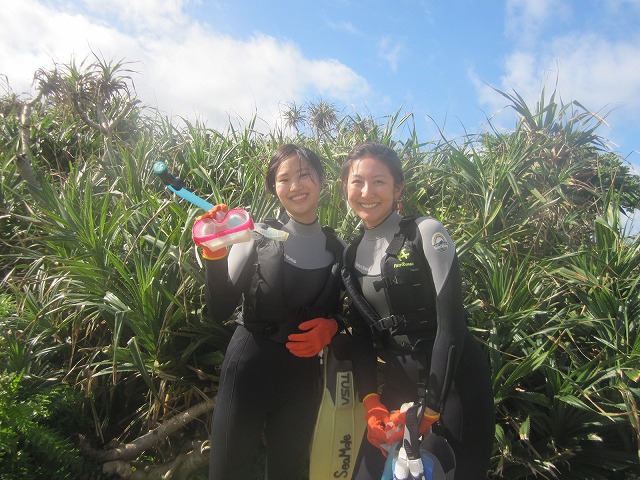 まずは水中にエントリーする前に南国植物の前で記念撮影です★