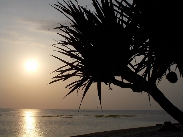 サンセットはアダンの木と実のシルエットで♪