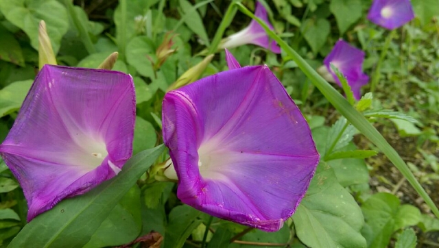 ふと路肩を見てみると道路の脇に野生の”朝顔”が咲いていました!!