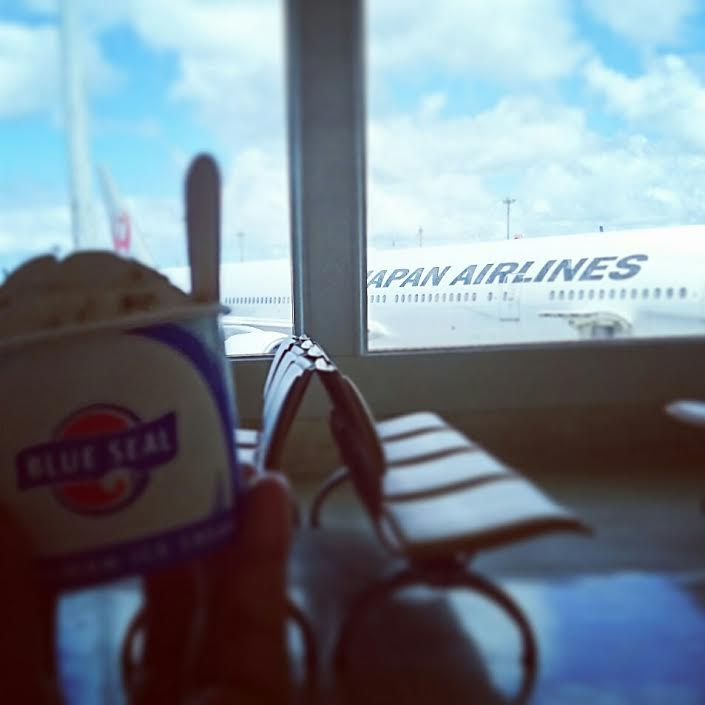 那覇空港にて、初めてブルーシールのサトウキビ味を食べました**