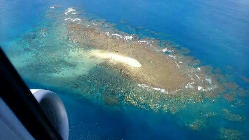 空から見る沖縄の海は、やっぱり青くて綺麗!