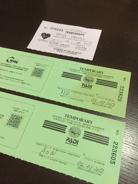 海洋でも実習を経て、無事に仮認定を受けることができました。