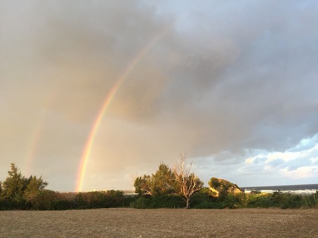 空気中に水滴があるときに太陽光が屈折して、その光が分解されて七色に見える・・・