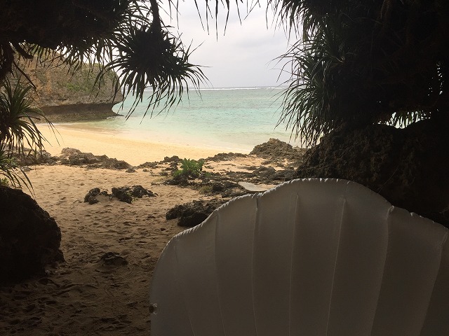 貝殻越し綺麗な砂浜が見えたので写真を撮りました!