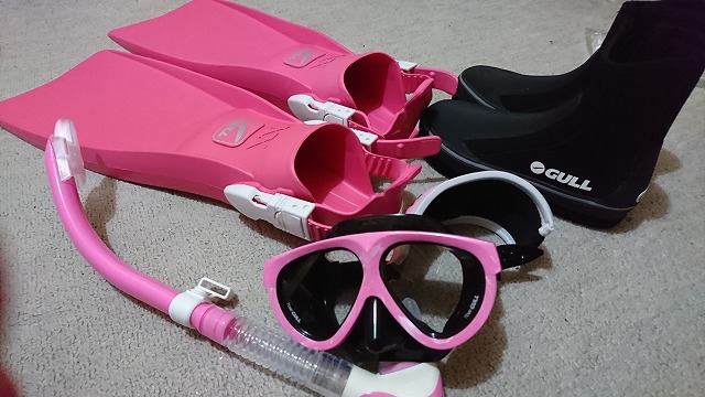 マスク、フィン、ブーツ、シュノーケルを買いました(^_^)