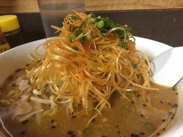 もやしと辛味の効いたねぎが少し濃い目のスープにうまく絡んで最後まで美味しく頂きました!