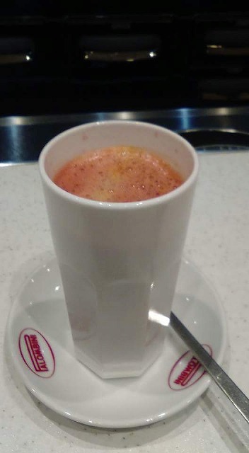 この写真は私がバールで頼んだブラッディオレンジジュースです。