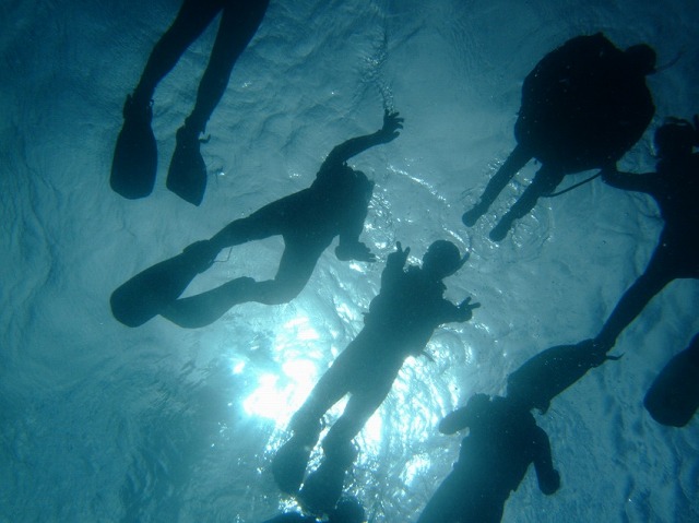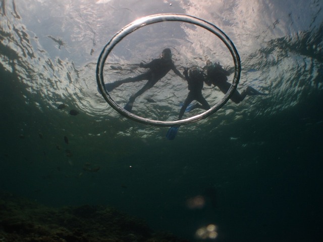 シュノーケルのお客様をご案内する際に素潜りをして海底から写真をとる練習をしています。