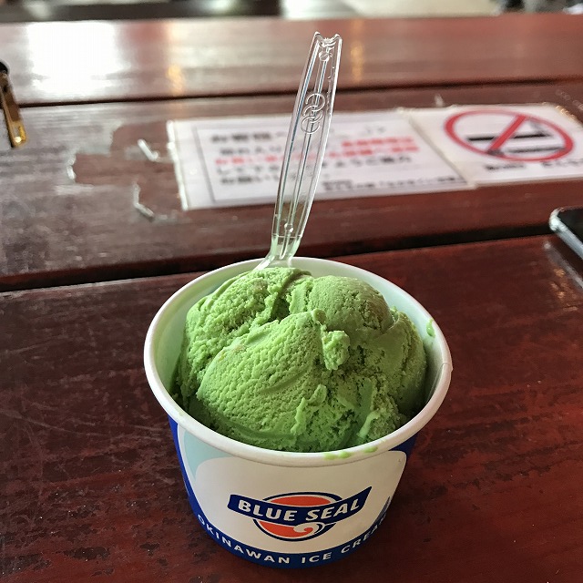 中には、軽食が食べられるところが沢山あり、ずっと食べたかったブルーシールのお店もあったのでアイスを食べました)^o^( !!!
