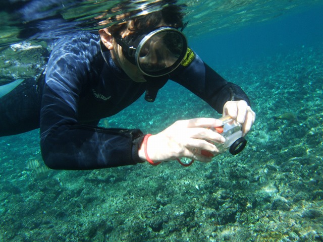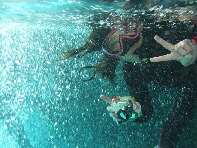 写真の潜っているスタッフはワーキング生のはやと君です。日々トレーニングに没頭中です^^とても頼りになり責任感も強くみんなのまとめ役もしています~♪