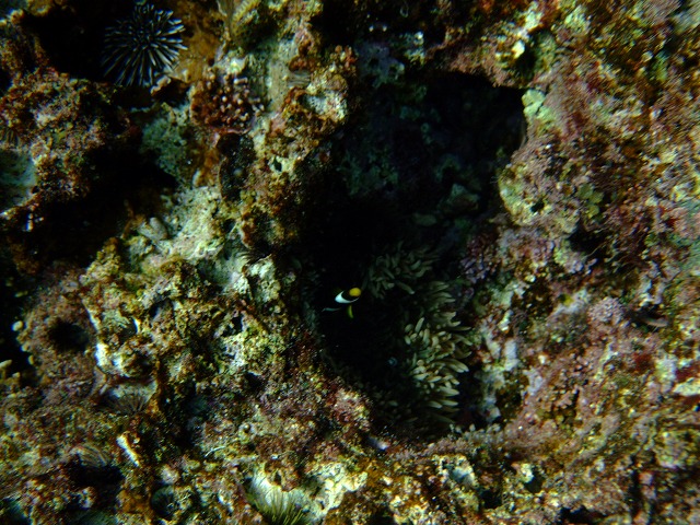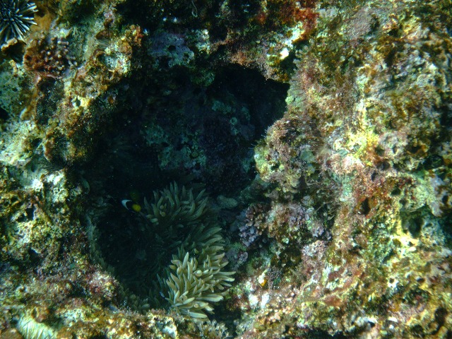 青の洞窟の前で小さいクマノミに遭遇出来ました。クマノミが移動する時フワフワのイソギンチャクと一緒に流れて行くそうです。海の自然の力は凄く感動しますね。毎回自然の凄さに驚きます^^なのでダイビングしている時が幸せに感じています。人間にパワーを与える自然に感謝しております。