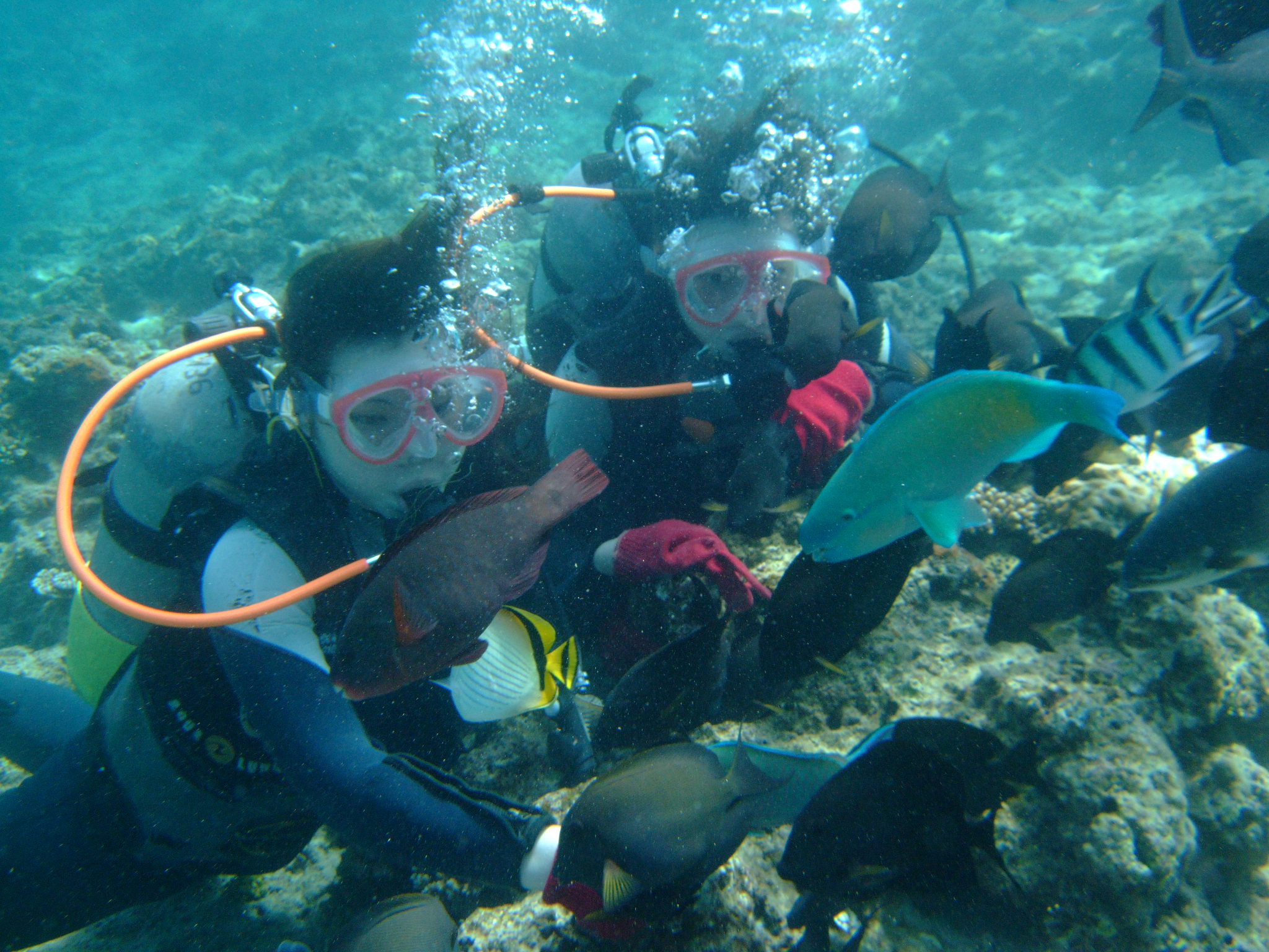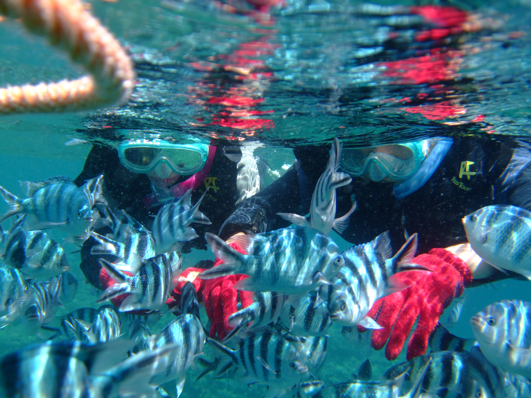 凄く綺麗な海で人懐こいお魚さん達にお出迎えされております^^♪