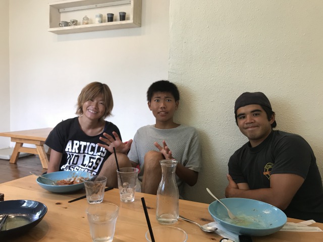 草むしりが終わった後、とおるさんに連れられてお昼ごはんを食べに行きました!