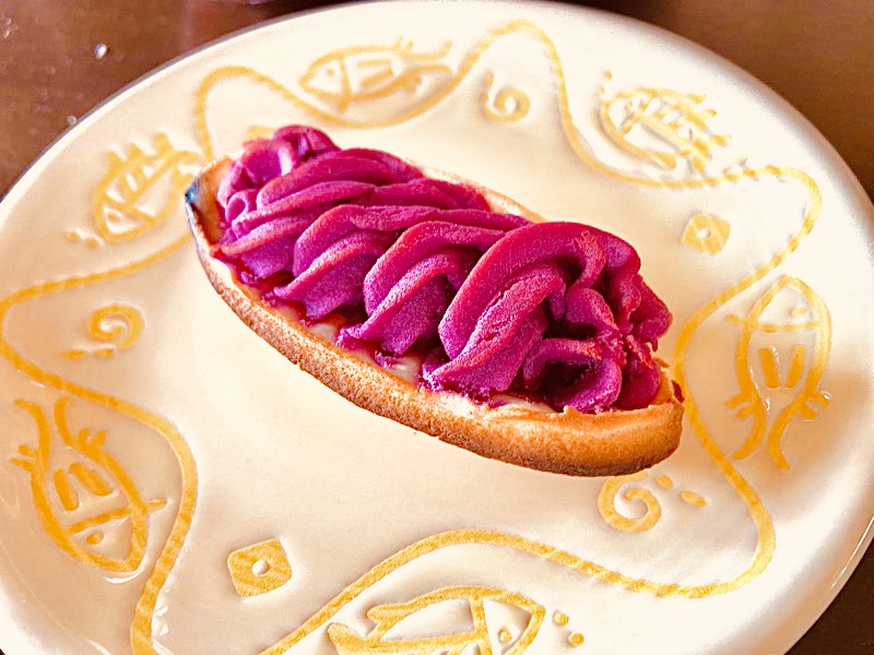 沖縄では有名な紅芋タルトです。最近いただいて初めて食べました。