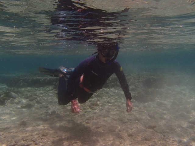 右も左も分からない状態から始まりましたが、最近では魚が集まるポイントなどにお客さんを先導したり、泳いでる魚をの種類を説明したり少しづつ出来る事が増えてきた気がします。マスクやシュノーケルの使い方、泳ぎ方の説明や海での注意点などの案内も少しづつ任せて貰えるようなってきました。