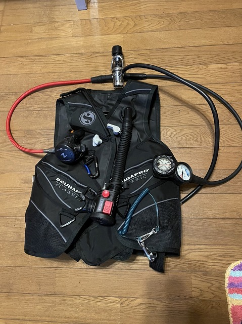 あと、ダイビング器材のBCDとレギュレータ