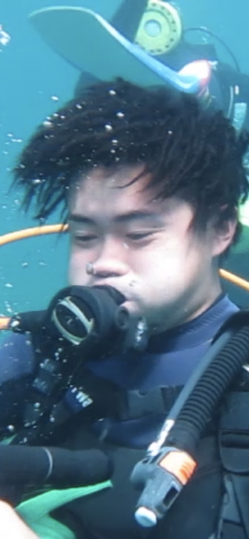 水中で笑い過ぎてレギュレーターをくわえてられな